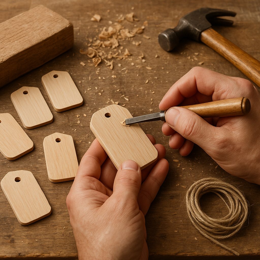 Proces powstawania drewnianych metek składa się z kilku etapów, które można podzielić na fazę wstępną, precyzyjne cięcie oraz obróbkę wykańczającą.